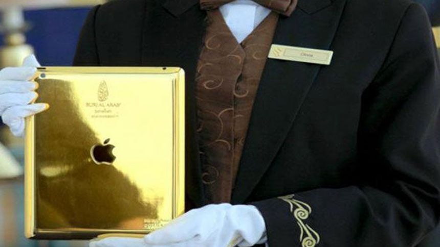 El hotel Burj Al Arab en Dubai, uno de los más costosos del mundo, ofrece a sus huéspedes iPads de 24 kilates.