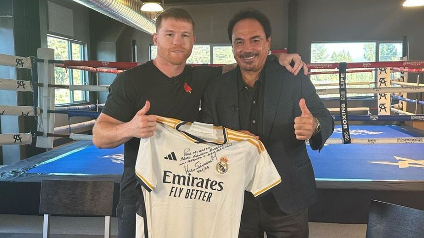 Hugo Sánchez le obsequió una camiseta del Real Madrid al 'Canelo' Álvarez