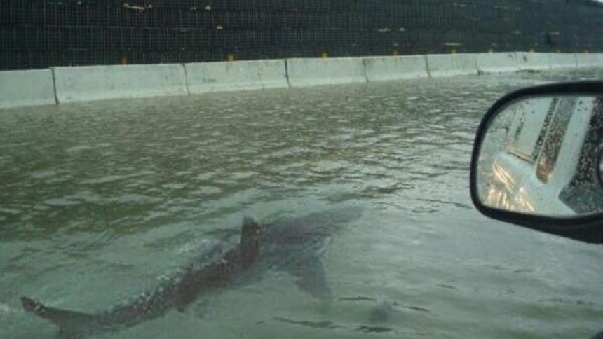 Huracán Ian: Grabaron a un tiburón nadando en las calles de Florida