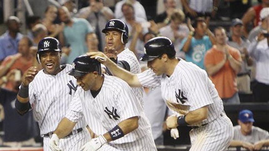 Raúl Ibáñez bateó un cuadrangular con la casa llena y dos outs para romper el empate en la pizarra en la octava entrada y los Yanquis de Nueva York vencieron el lunes 6-3 a los Azulejos de Toronto.