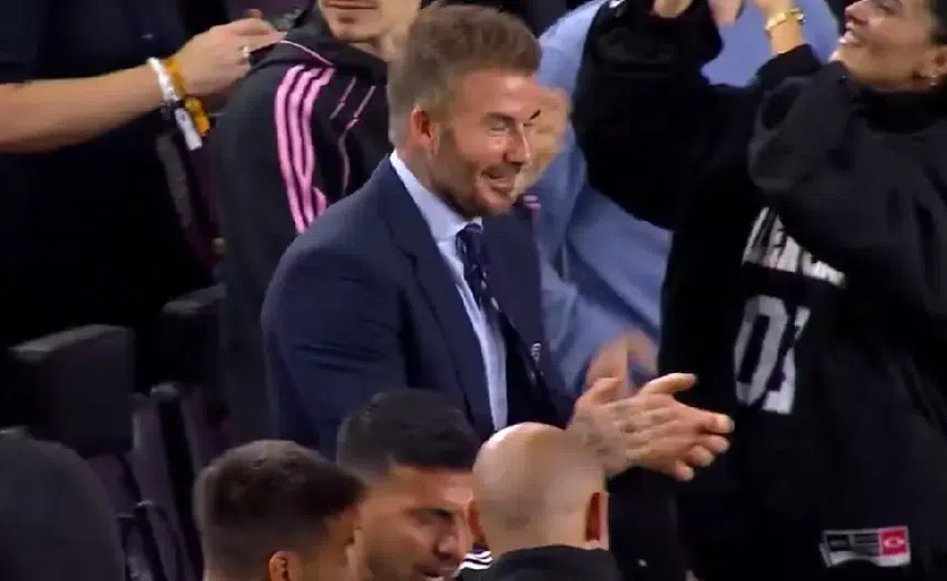 David Beckham, ante el golazo del atacante argentino, se levantó de su asiento para aplaudir, mientras sonreía por el momento mágico que vivió en Chase Stadium, casa del Inter de Miami.