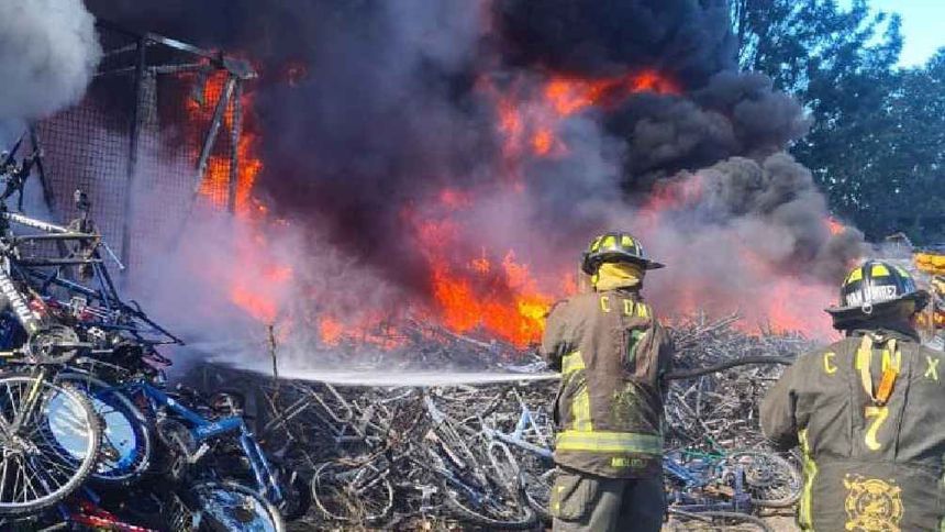 “Informamos que al interior de un depósito vehicular en aproximadamente 500 metros se queman bicicletas y semáforos en gran cantidad, no se reportan lesionados; continuamos laborando en el lugar”, explicó el Heroico Cuerpo de Bomberos de la CDMX, que se movilizó al incendio en Tláhuac.