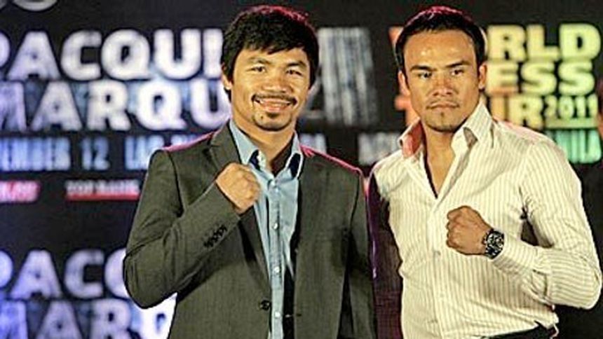 Juan Manuel Márquez, Campeón Mundial Superligero de la Organización Mundial de Boxeo, y el filipino Manny Pacquiao iniciaron una gira relámpago para promocionar su cuarta pelea, que se realizará el 8 de diciembre, en el MGM Grand de Las Vegas.