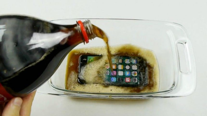 Un iPhone 7 en un refractario con refresco de cola | ESPECIAL