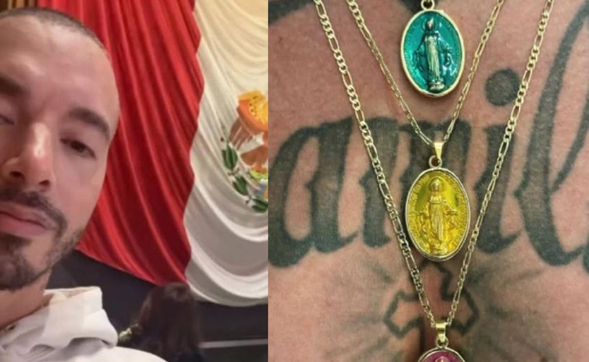 J Balvin se rinde ante la Virgen de Guadalupe y visita la Basílica con medallitas en el pecho