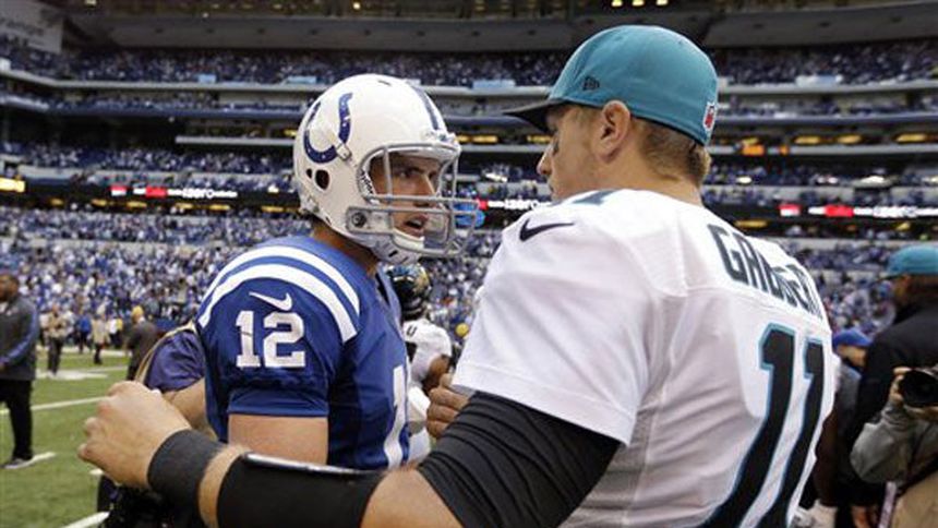 Blaine Gabbert conectó con Cecil Shorts III en un pase de touchdown de 80 yardas con 45 segundos en el reloj en la victoria de los Jaguares de Jacksonville sobre Potros de Indianápolis 22-17 este domingo.