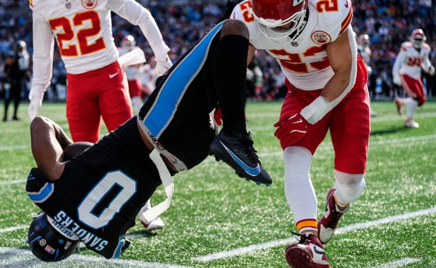 Corrían los últimos segundos del 2do cuarto y Panthers buscaba el TD antes del descanso, Young conectó un pase corto a la banda con Ja'Tavion Sanders y en el afán del receptor de conseguir el 1&10, chocó con el defensivo de Kansas City, lo que ocasión que Sanders diera una vuelta en el aire y cayera al césped con la cabeza.