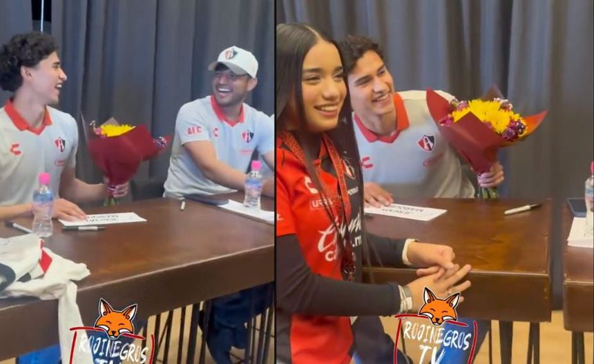 El mediocampista Jeremy Márquez, jugador de los Rojinegros del Atlas, vivió un momento inolvidable durante una firma de autógrafos previa al inicio del torneo Clausura 2025 de la Liga MX. En un acto inesperado, una aficionada se presentó con un ramo de flores para entregárselo personalmente al jugador, gesto que desató una mezcla de risas y un ambiente de camaradería entre los presentes.