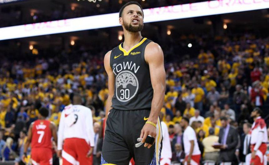 Stephen Curry, molesto tras caer contra los Raptors | AP