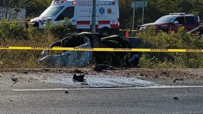 En pleno Viernes Santo se registró un accidente en la carretera Mérida-Progreso, que dejó como saldo dos personas fallecidas tras ser consumidas por el fuego al quedar atrapadas en el auto en el que viajaban; hay tres heridos más.