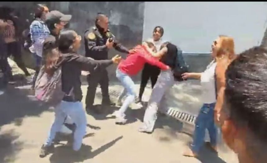 En el video se observa a ambas jóvenes golpearse y jalonearse mientras varias personas, entre ellas un policía, trataban de separarlas.