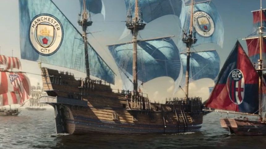 Este cormecial está ambientado en la época de los piratas y se puede observar varias embarcaciones de los equipos participantes de la Champions League, destacanto a los clubes italianos y con la participación de estrellas de la Serie A como lo son Lautaro Martínez del Inter de Milán o Dušan Vlahović de la Juventus.