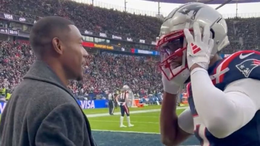 Ju-Ju Smith Schuster saluda a David Alaba previo al Pats vs Colts