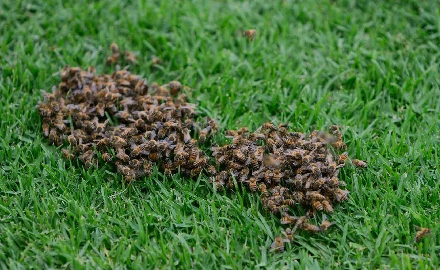 Desde que se percataron del enjambre de abejas en el terreno de juego, gente encargada del estadio y del césped del Estadio Victoria, acudieron para remover a los insectos sin que estos se vean perjudicados.