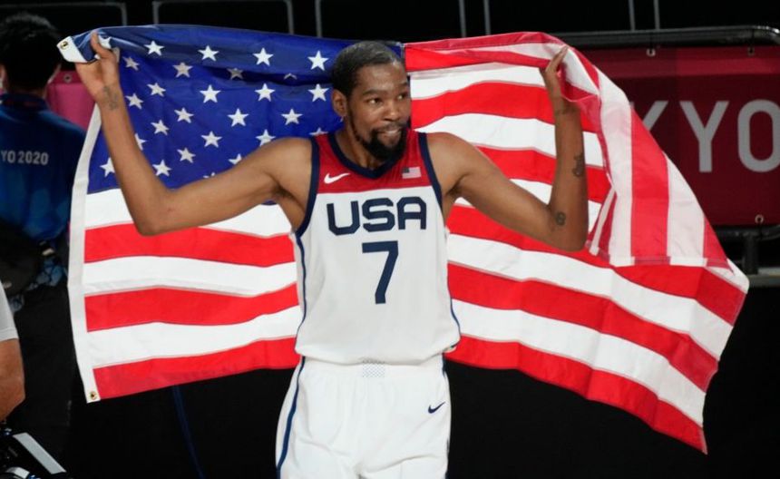 Kevin Durant anotó 29 unidades para Estados Unidos y se unió a Carmelo Anthony como los únicos con tres preseas doradas en el baloncesto masculino al encaminar a Estados Unidos a un triunfo el sábado 87-82 sobre Francia para refrendar su título olímpico y ponerle fin a un verano que inició con incertidumbre y terminó en un festejo.