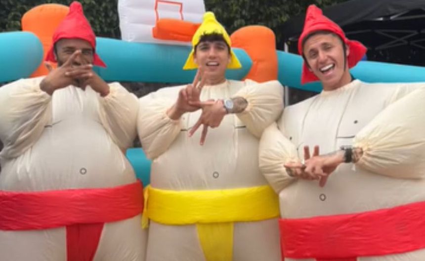 En las fotos de puede observar a ‘Bufalo’ Aguirre, Kevin Álvarez y Brian Rodríguez en la fiesta, con la peculiaridad de que los tres jugadores portaban una botarga de luchador de sumo, temática de la fiesta pues el propio hijo de Aguirre portaba una igual.