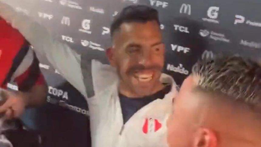 Tevez en la zona mixta festejando | CAPTURA DE PANTALLA: TWITTER
