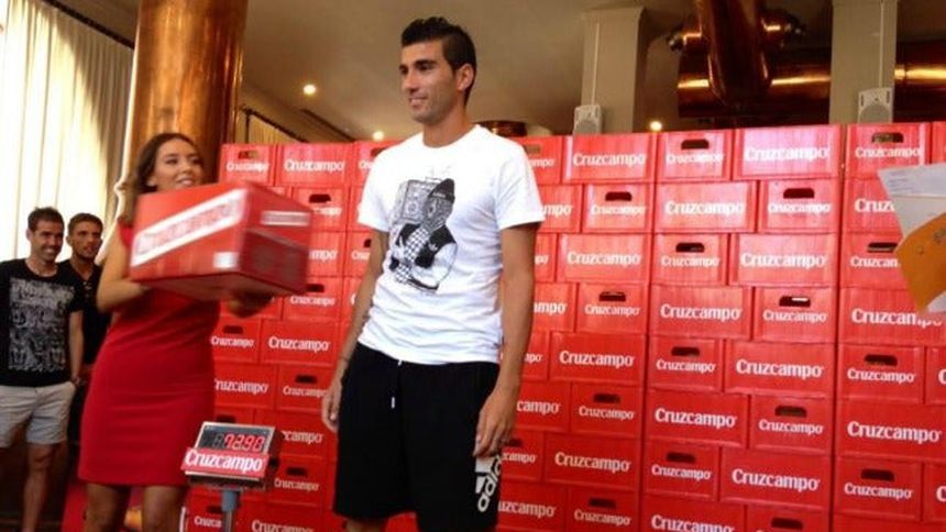 Jugadores del Sevilla reciben su peso en cerveza
