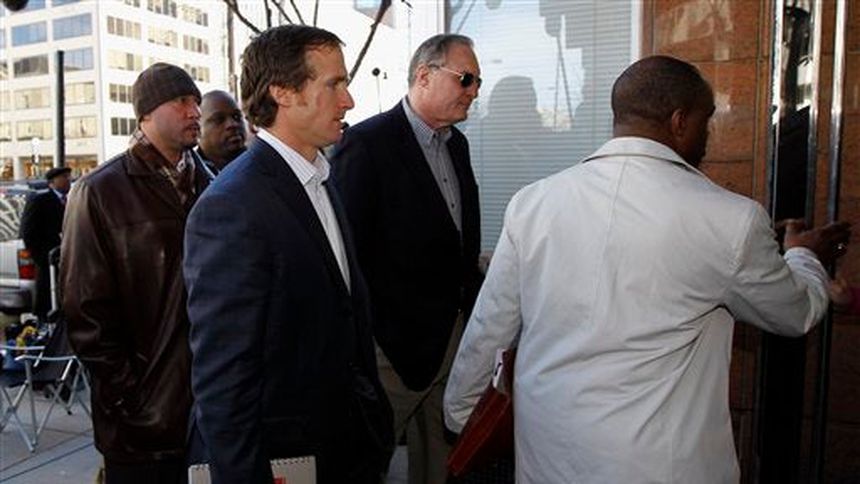 Brees estuvo entre un grupo de unas 20 personas, quien dirigió las inmediaciones de la sede del sindicato.