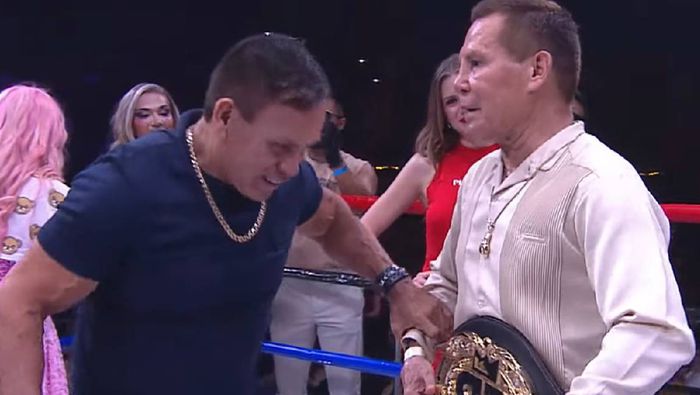 Lo que inicialmente parecía un acto protocolario se convirtió en uno de los momentos virales de la noche cuando Konan Big pidió a Julio César Chávez que lo golpeara en el ring.