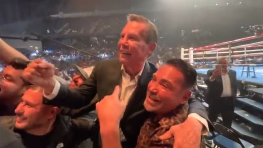 Al darse cuenta que era de la Hoya, el 'Campeón Mexicano' comenzó a sonreír y le devolvió el abrazo de forma cariñosa. Mientras los dos miraban al público, Óscar señaló a Chávez y se refirió a él como "El mero mero".