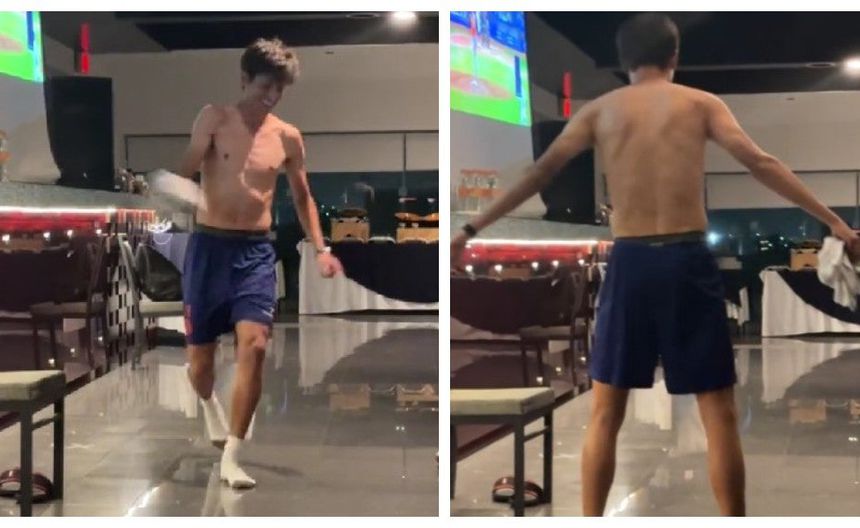 Fue entonces que el jugador pasó al frente, se quitó la playera, corrió e hizo el tradicional festejo que ha emulado en otras ocasiones.