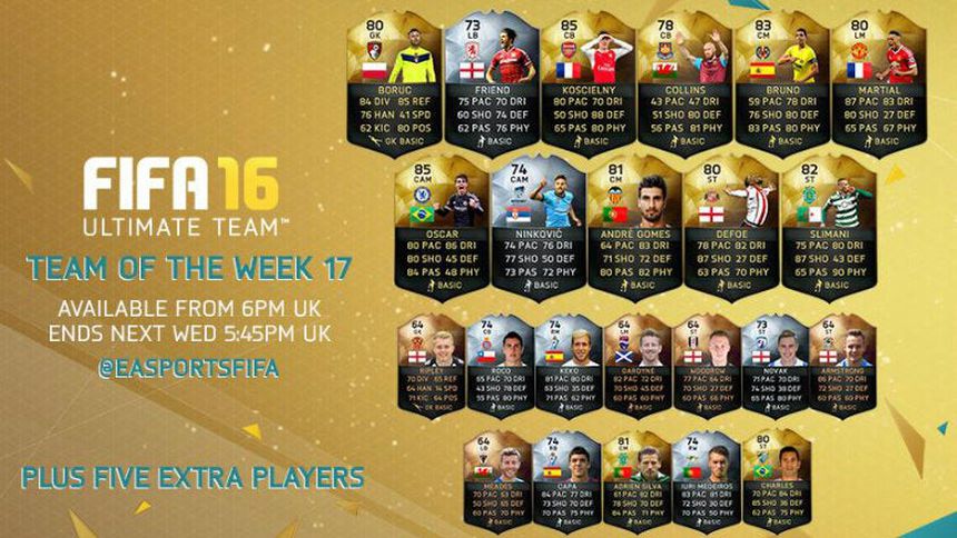 Talento y juventud, son los sellos que dominan el equipo de la Semana 17 del FIFA Ultimate Team, pues jugadores como Oscar, Anthony Martial y André Gomes son los que comandan a la oncena más destacada de esta jornada.
