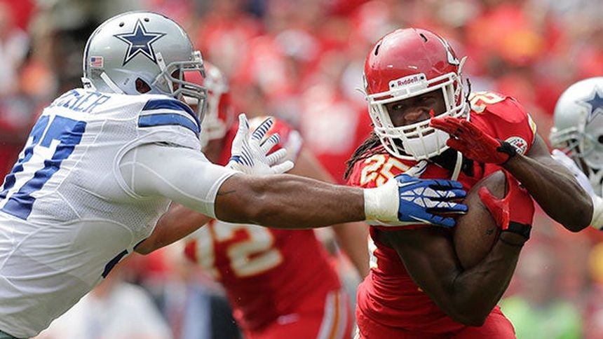 Jamaal Charles acumuló 55 yardas por tierra y atrapó un pase de touchdown para los Jefes, cuyo entrenador Andy Reid se estrenó con victoria en su debut en casa.