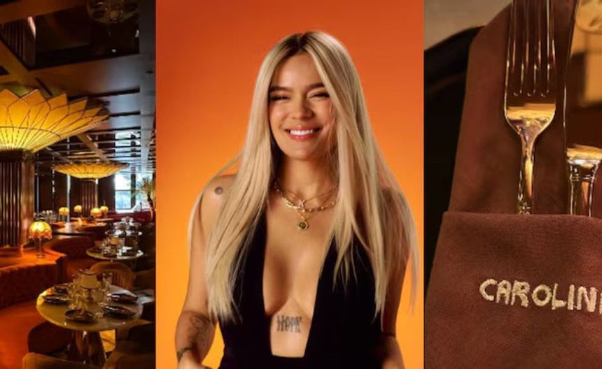 El restaurante lleva el nombre real de la cantante (Carolina Giraldo), destaca por su diseño moderno y elegante, que combina elementos de la naturaleza con toques contemporáneos.