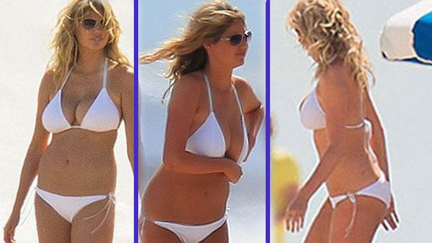 Kate lució un pequeño bikini y un amplio escote, que apenas contenía sus curvas, mientras chapoteaba en el mar.