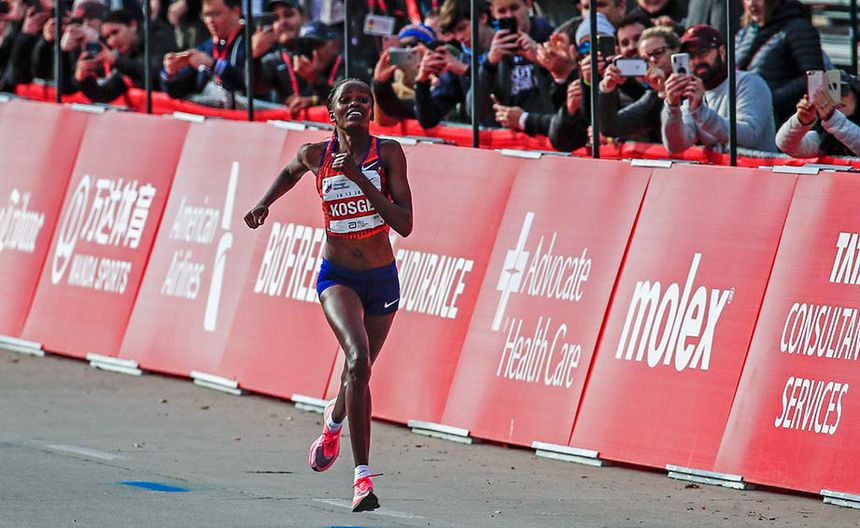Un día después de que el keniano Eliud Kipchoge se convirtiera en el primer atleta en bajar de las dos horas en maratón en Viena, su compatriota Brigid Kosgei se ha convertido en la primera mujer en correr la distancia en menos de 2h15 al establecer en Chicago (Estados Unidos) un nuevo récord mundial femenino con un tiempo de 2h14:04.