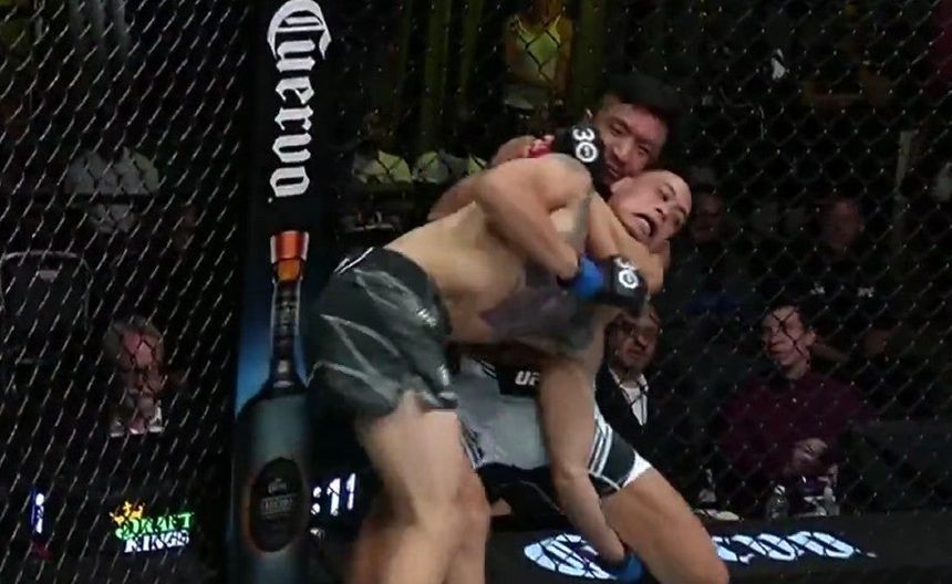 El peleador mexicano estuvo cerca de noquear a su rival surcoreano Kyung Ho Kang segundo antes de ser sometido con un mataleón en el minuto 2:36 del primer salto.