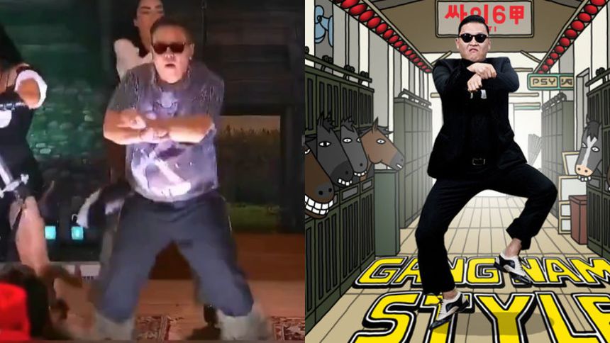Al final, al conductor le arreglaron su cabellera más corta dándole un parecido a los personajes antes mencionados, por eso al momento, en la fiesta, de escuchar las primeras notas del éxito coreano salió corriendo a bailar.