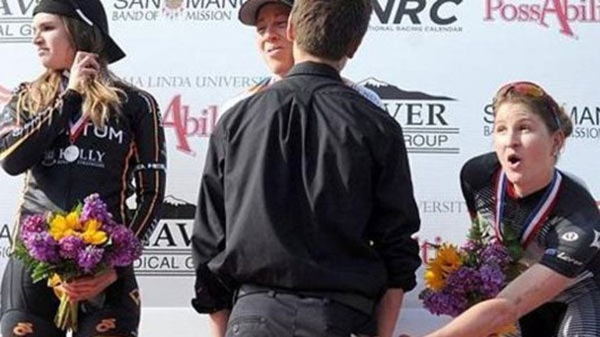 Loren Rowney, de 24 años, tocó el trasero de un joven en el podio del Redlands Classic en Estados Unidos.