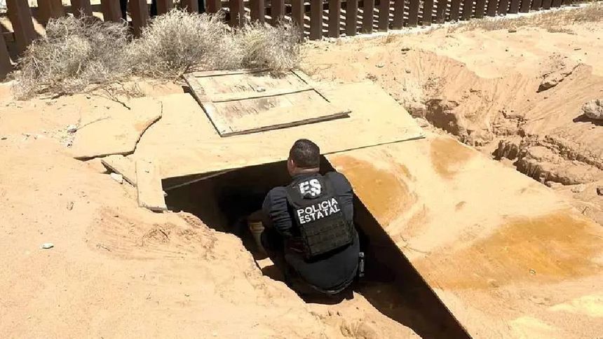 Descubren pequeño narcotúnel bajo el muro fronterizo entre Sonora y Arizona en San Luis Río Colorado.