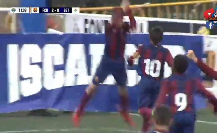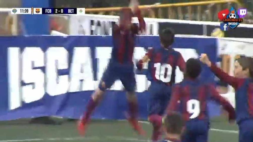 Durante un partido entre las categorías inferiores del Barcelona y el Real Betis, el joven futbolista, portando el número cinco, marcó el tercer gol de su equipo en tan solo once minutos de juego. Tras recibir un tiro de esquina, el joven disparó con su zurda, enviando el balón al fondo de la red.