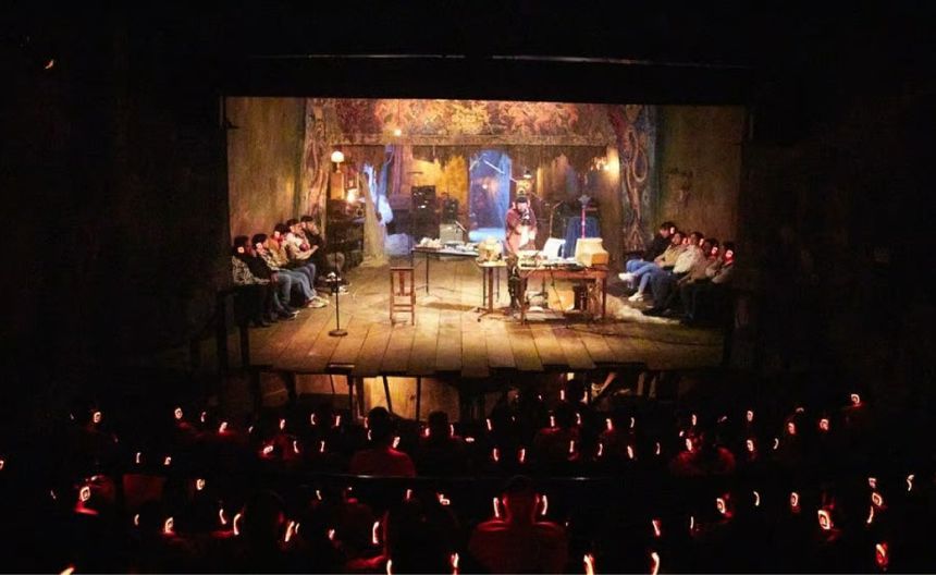 En cuanto llegues al escenario, verás un altar y sentirás unas vibras pesadas como si alguien estuviera observándote. Encontrarás tu asiento, notarás los audífonos colocados en cada butaca.