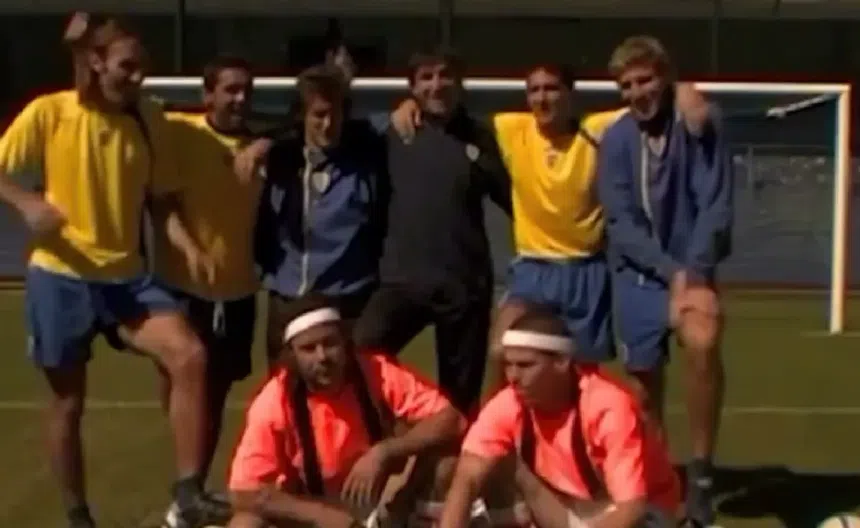 Ya dentro del estadio, lo que muestra el video es pura esencia Jackass: Steve-O y Pontius se plantan con camisetas humorísticas y colores chillones, mientras Martín Palermo —máximo goleador en la historia de Boca— y Rolando Schiavi se preparan para lanzar tiros libres directos hacia sus cuerpos. Los presentadores reaccionaban con exageración, pero también con dolor real, cayendo al pasto y riéndose a pesar de los golpes.