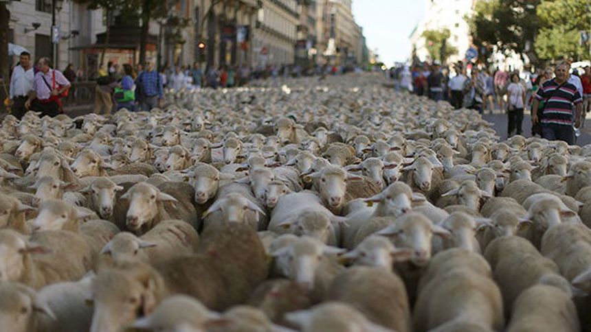 Un rebaño de 2 mil ovejas merinas cruzó el centro de Madrid como parte de la 20 edición de la Fiesta de la Trashumancia, tradición de la Edad Media que reivindica el papel de la ganadería en la conservación de la riqueza cultural y natural de España.