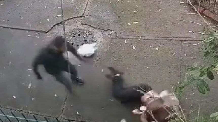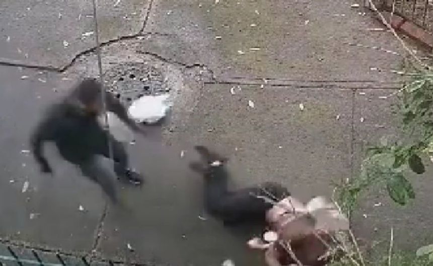 Gracias a una cámara de seguridad se puede observar como el hombre iba caminando mientras hablaba por teléfono, después es que aparece la mujer caminando tranquilamente.
