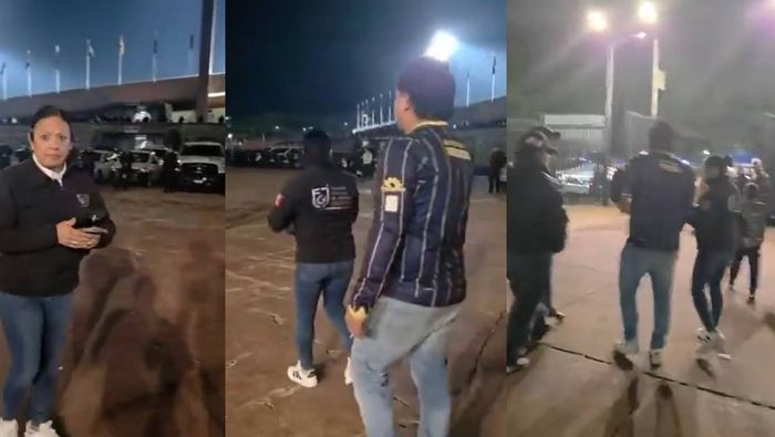 Tras escoltarlos hasta la salida, en la explanada del Estadio Olímpico Universitario apareció la mujer señalada, quien dijo trabajar en la Fiscalía, con la intención de llevarse a uno de los aficionados señalados de rijosos, pues aparentemente sería su familiar.