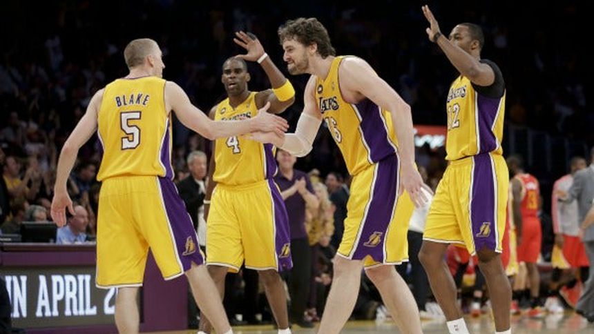 Steve Blake anotó 24 puntos, el español Pau Gasol sumó su séptimo triple-doble y los Lakers de Los Ángeles consiguieron el séptimo sitio de los Playoffs en la Conferencia del Oeste con una victoria en tiempo extra de 99-95 sobre los Rockets de Houston, este miércoles.