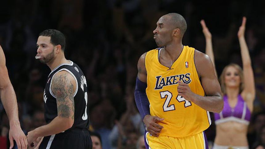Kobe Bryant encestó seis de sus 25 puntos en los últimos dos minutos y los Lakers de Los Angeles resistieron para vencer el martes por 95-90 a los Nets de Brooklyn y darle al entrenador en jefe Mike D';Antoni un debut victorioso ya junto a la cancha.