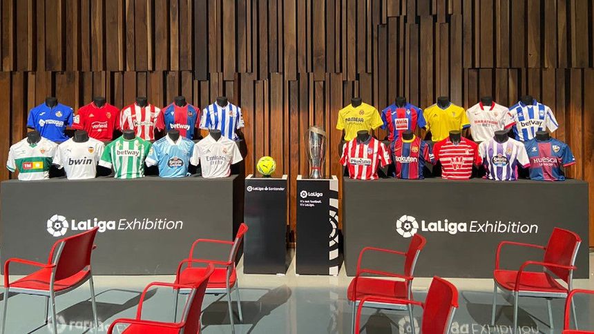 Al entrar a la exposición de los equipos de LaLiga, los aficionados podrán observar todas las camisetas que conforman la Primera División del futbol europeo, conforme nacieron los clubes y las vistas de diferentes estadios en los que se juegan los partidos