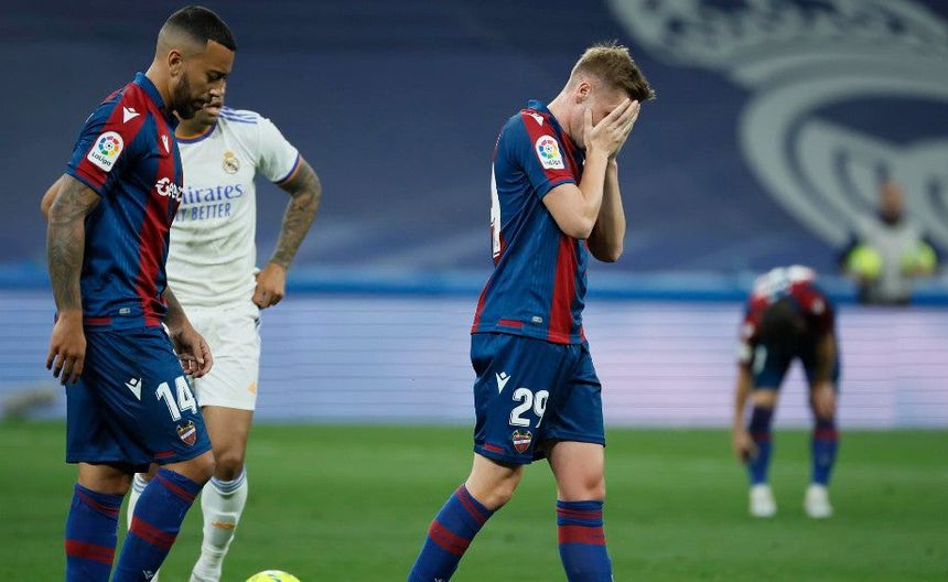 El descenso ya era una realidad y al Levante le restaban 70 minutos agónicos, tiempo suficiente para que pasasen por la cabeza de sus jugadores todos los errores cometidos en la temporada y les afectase en el partido. Son pudo devolver un atisbo de esperanza con un disparo ajustado al poste tras un desajuste defensivo madridista. Fue un espejismo.
