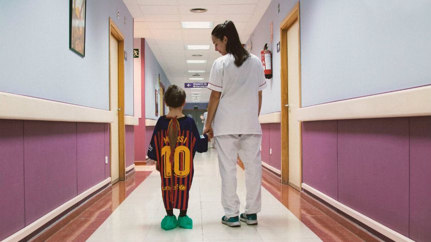 "Cada día en los hospitales muchos niños juegan un partido muy difícil. La enfermedad es un rival que da miedo, pero al que se puede ganar. Hemos convertido camisetas de futbol en batas de hospital. Porque sabemos que cuando nos ponemos la camiseta de nuestro equipo somos más valientes, más fuertes, más capaces de hacer frente a cualquier rival", se menciona en el video.