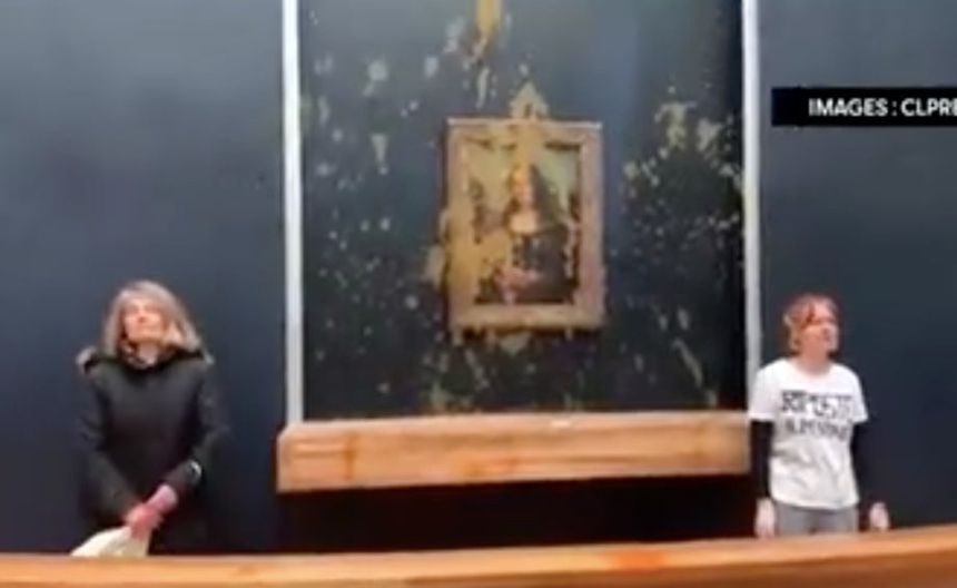 Dos activistas le aventaron sopa al cuadro de la Mona Lisa en el Museo de Louvre de París, Francia. En redes sociales circuló un video en el que se ve a un par de personas con camisetas con la leyenda ‘Riposte alimentaire (respuesta alimentaria)’ arrojando comida a la pintura del Siglo XVI hecha por Leonardo Da Vinci y que se encuentra en el Museo del Louvre en la capital de Francia.