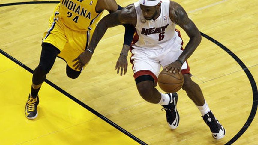 Paul George encestó tres tiros libres con 2,2 segundos por jugar en el tiempo extra, el cual él forzó con un milagroso disparo desde atrás del arco, para dar a los Pacers la ventaja. Pero James simplemente atacó por la banda izquierda, anotó con facilidad y el Heat escapó a la derrota.