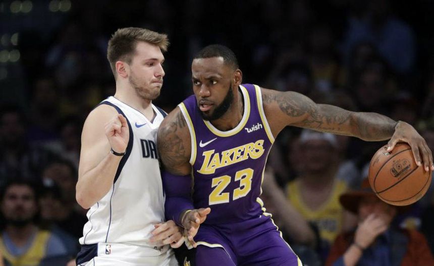LeBron James en partido con Doncic | AP