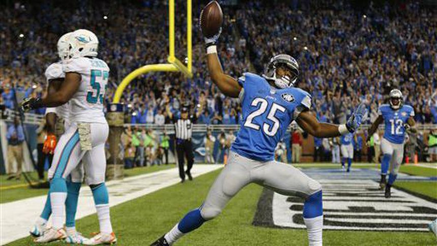 Matthew Stafford lideró otra vibrante victoria de Detroit conseguida en los últimos minutos, esta vez con un pase de touchdown de 11 yardas a Theo Riddick con 29 segundos por jugar, con lo que los Leones derrotaron 20-16 a los Delfines de Miami.